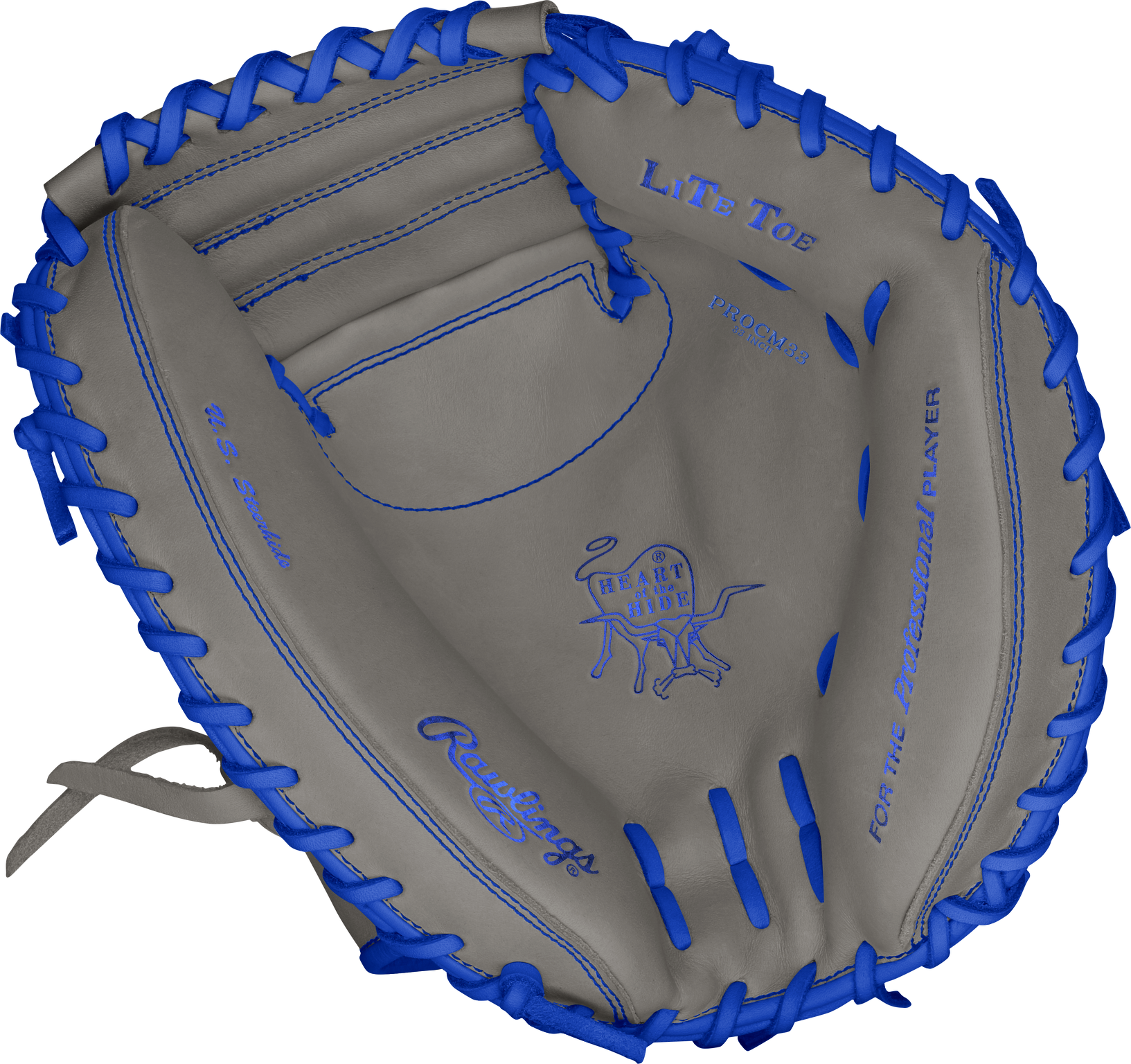 Showcase your skills and style behind the dish with the Rawlings Heart of the Hide 33-Inch Catcher’s Mitt. This CM33-pattern mitt is built for elite defenders looking to take control of the game — with a Charcoal and Royal Blue colorway this glove really stands out on the field. Crafted from pro-grade Heart of the Hide steerhide leather, this glove delivers unmatched quality and lasting structure for catchers who demand the best. The 1-piece solid web provides added strength and concealment for pitch-calling, while the CM33 pattern gives you a deep pocket for secure catches and a smooth transfer. Designed for serious catchers with a bold edge, this mitt brings together functionality, fit, and flair in one standout design. Command the game and own your presence behind the plate with the Rawlings Heart of the Hide 33-Inch Catcher’s Mitt.