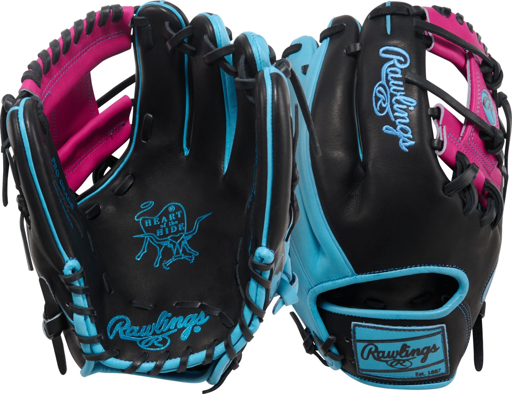 Step onto the dirt with throwback swagger in the Rawlings Heart of the Hide Spring Break infield glove. Featuring a bold Black shell with Columbia Blue and Berry accents, this glove channels classic 90s highlight-reel energy with a modern edge — made for players who want their style to pop as much as their defense. Crafted from Rawlings’ world-renowned Heart of the Hide steerhide leather, this glove delivers the premium feel, durability, and structure trusted by elite infielders. The 11.5-Inch size, 200 pattern, and Pro I Web design create a quick, responsive pocket built for smooth transfers, fast hands, and confident control on every ground ball. A padded thumb sleeve and comfortable wrist lining add support and game-ready comfort through long practices and big-game moments. Part of the Spring Break Collection, this glove blends pro-level craftsmanship with bold, retro-inspired attitude for players who play fast, compete hard, and aren’t afraid to stand out. Lock it in, make every play count, and own the infield with the Rawlings Heart of the Hide Spring Break infield glove.